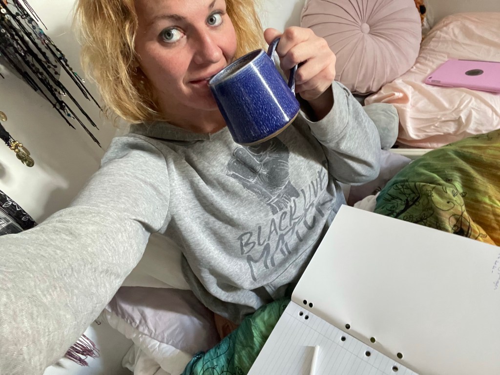 1. Write my the “Morning Pages” – every morning. Taken from Julia Cameron’s The Artists Way – I start the day taking my vitamins, make a coffee and either curl up on the couch or jump back in bed (I do live in Tasmania – it is SUPER cold here)… from there I write three A4 pages free hand of free-flow thoughts, ideas, rants, complaints or a personal mantra…. anything. No proper writing. No editing. Three pages of brain emptying lines before I start my day. Every day.