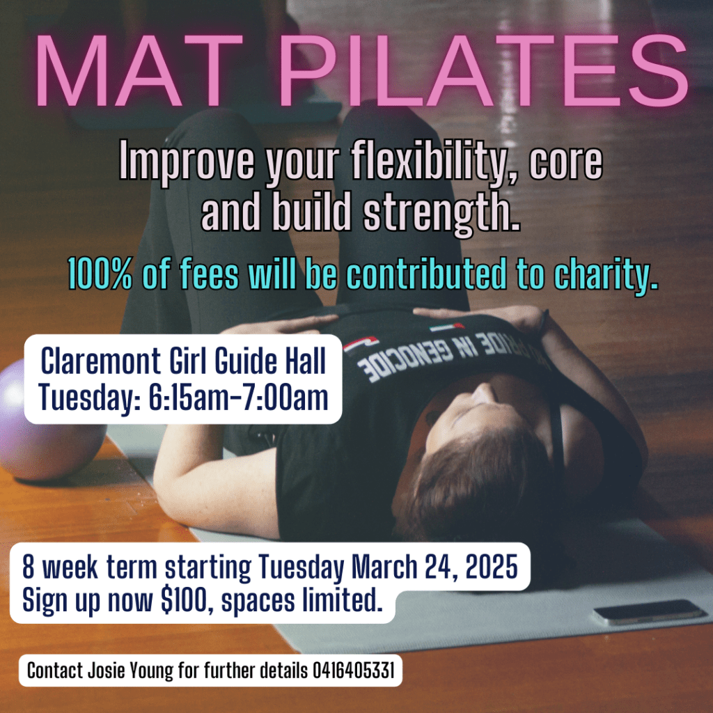 My classes aim to support participants’ health, foster offline community’s connections, and increase access to mat Pilates in the Northern suburbs.